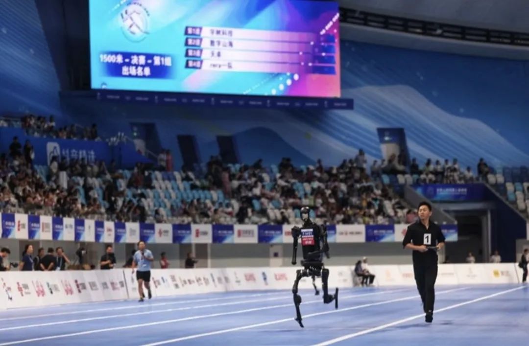 “各就各位……砰!”随着发令枪响,本次运动会首个田径项目——1500米决赛开跑。参赛选手称得上“群星闪耀”,有宇树科技,也有今年4月刚取得人形机器人半马冠、亚、季军的天工、松延动力和卓益得。机器人奔跑时的机械摩擦声和观众激烈的呐喊声相互交织,看得人心潮澎湃。
