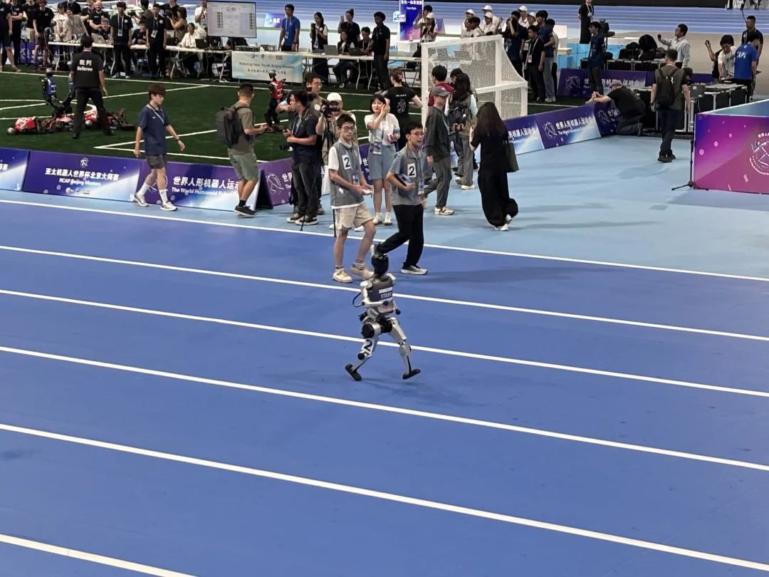 “这款机器人是我们公司成立以后做的第一款人形机器人,2023年的时候我们最快能跑到大概3.3米每秒,这次比赛更快了,平均速度大概3.8米每秒,其实它的极限速度比这还快很多,能达到5米每秒左右。”王兴兴坦言,人形机器人行业最多只发展了2~3年,相对还是初级一些的,希望通过比赛来推动整个行业和技术的进步。