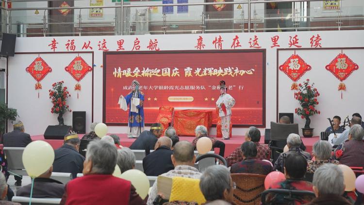 在成武县怡养护理院,老年大学的学员们带来的文艺慰问演出和戏曲专场,赢得满堂彩。87岁高龄的白圣雅老人虽年事已高,却依然神采奕奕地登台表演。
